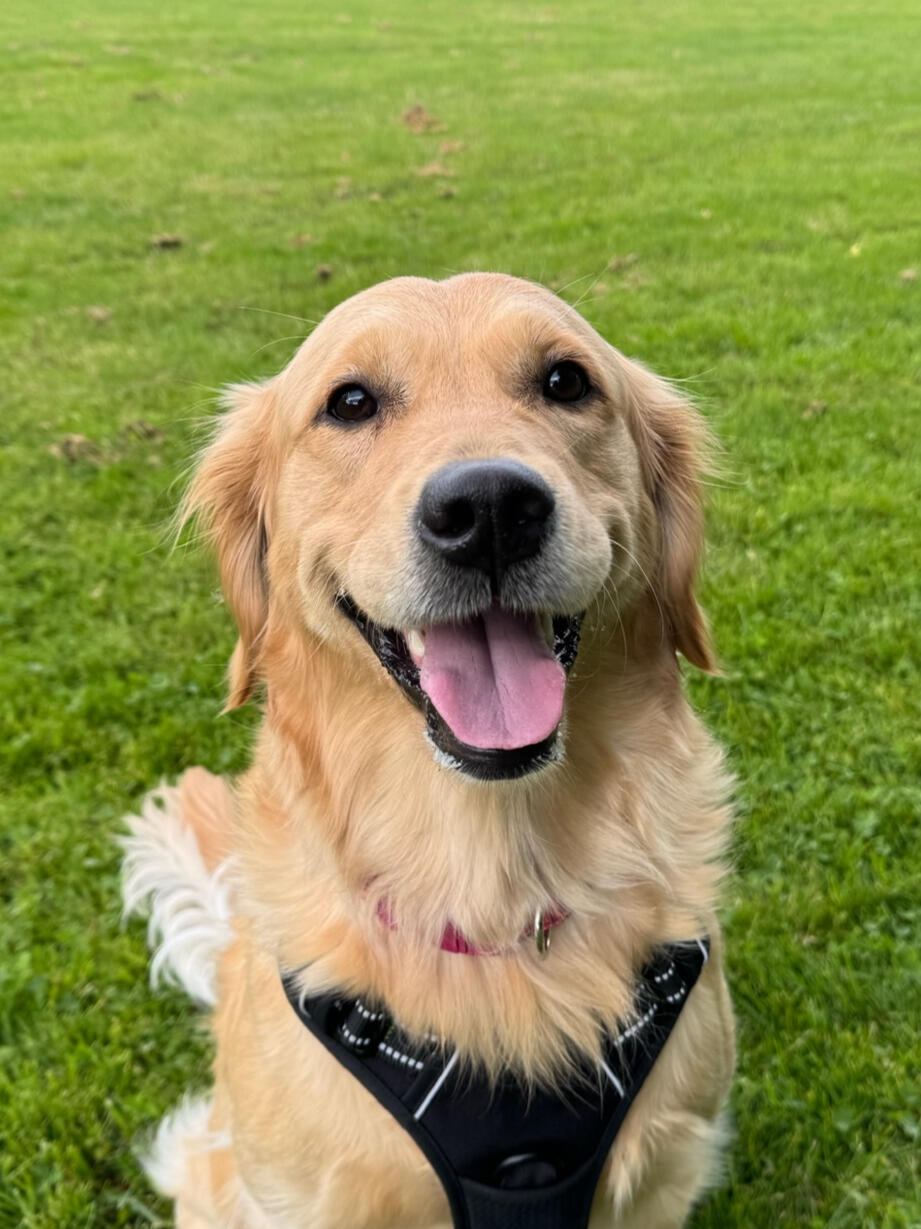 Josie is a light-colored Golden Retriever with a smaller-than-average frame, weighing 63 pounds. She’s incredibly sweet, athletic, and affectionate — always eager to be close to her people, chase the ball, or give a kiss. Whether she’s hiking trails or snuggling on the couch, Josie brings an excited, joyful energy to every part of life.